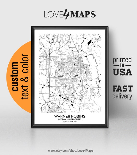 Warner Robins Georgia Map, Warner Robins City Print, Warner Robins