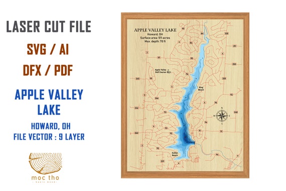 Digital File PDF, SVG Apple Valley Lake Howard Ohio Map