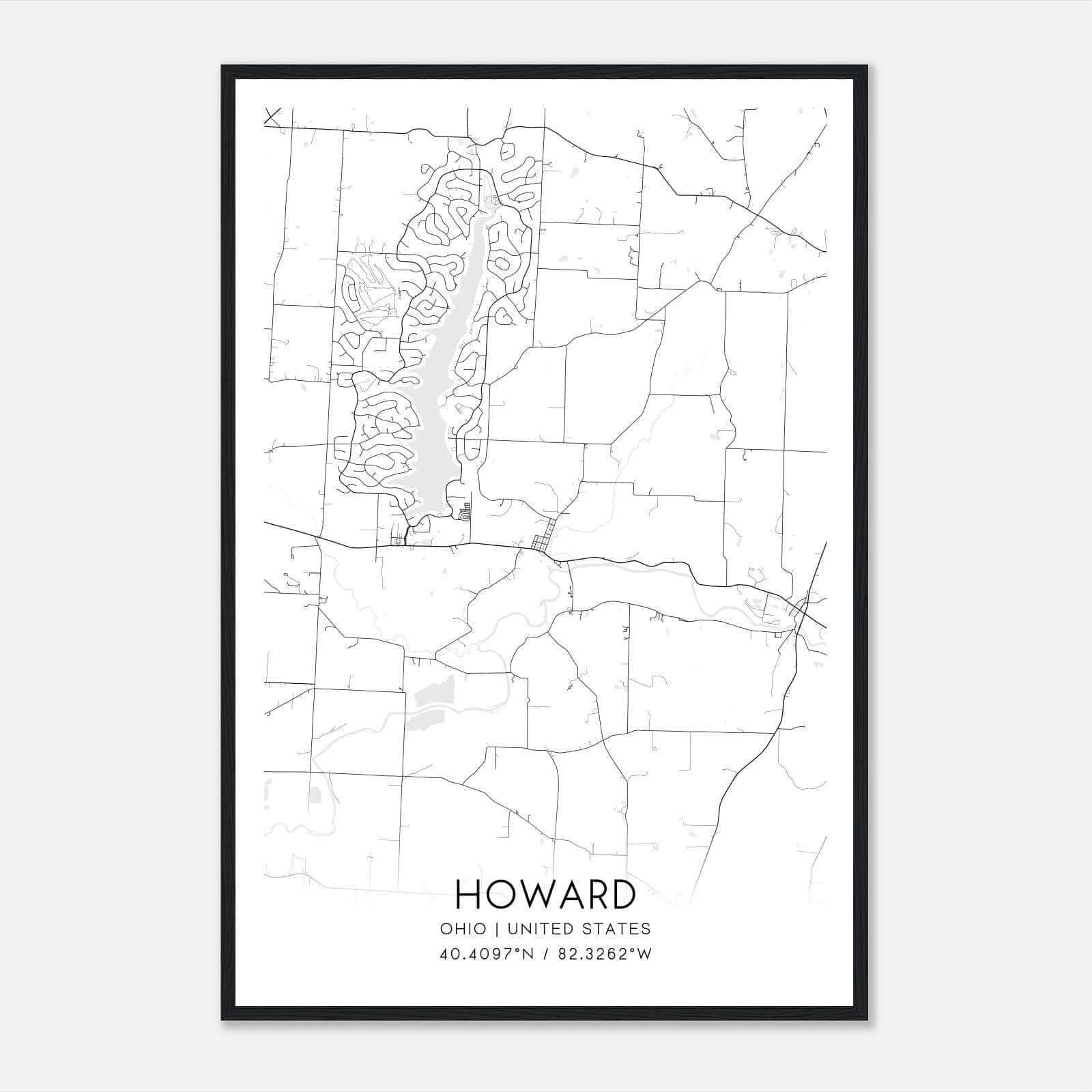 Howard Ohio Map Poster, Modern Home Decor Wall Art Print Custom