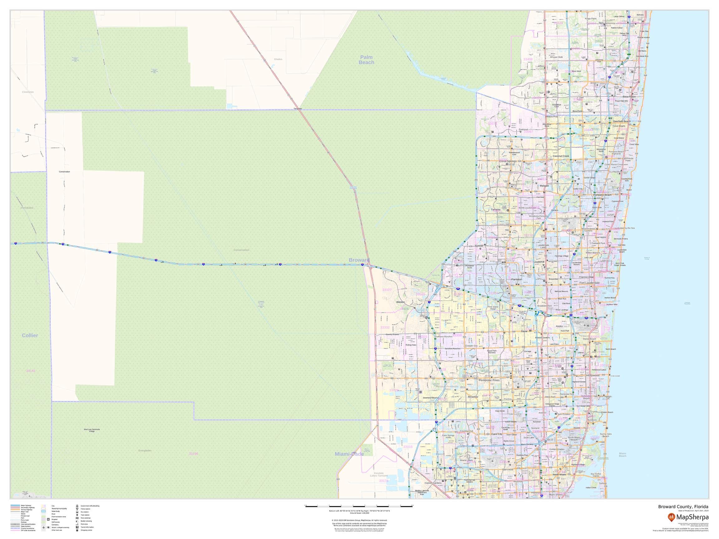 Amazon.: Broward County, Florida 48″ x 36″ Paper Wall Map