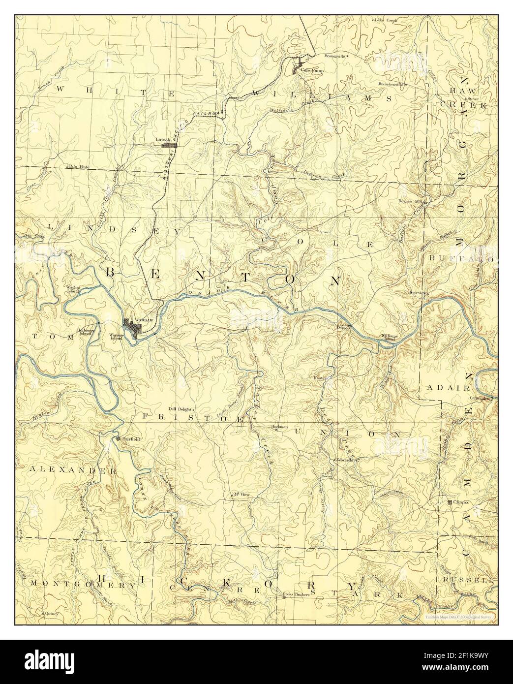 Warsaw, Missouri, map 1887, 1:125000, United States of America by