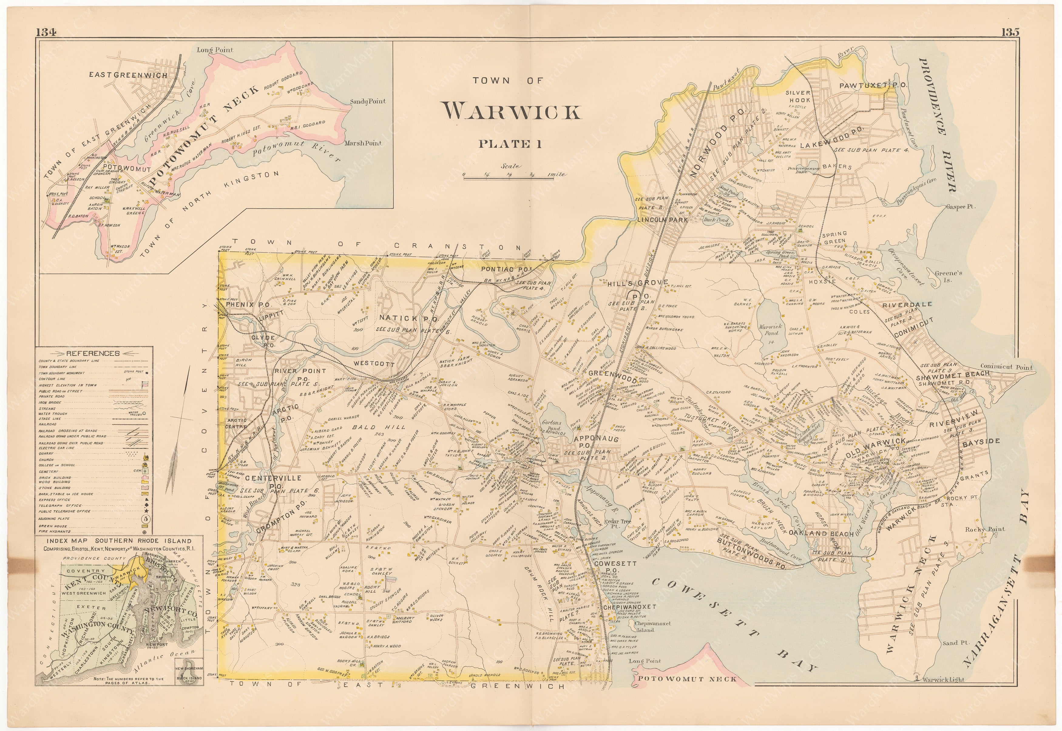 Warwick Ri Plat Maps – Taken from original individual sheets and digitally stitched together to form a single seamless layer, this fascinating Historic Ordnance Survey map of Warwick, Warwickshire is available in a wide . Take a look at our selection of old historic maps based upon Warwick in Warwickshire. Taken from original Ordnance Survey maps sheets and digitally stitched together to form a single layer, these maps .